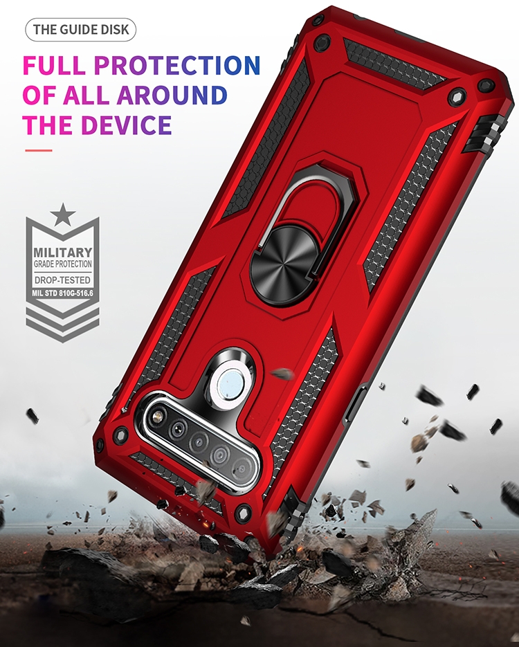 Funda Protectora TPU + PC para LG Q61 con Soporte Giratorio 360 Grados (Plateado)