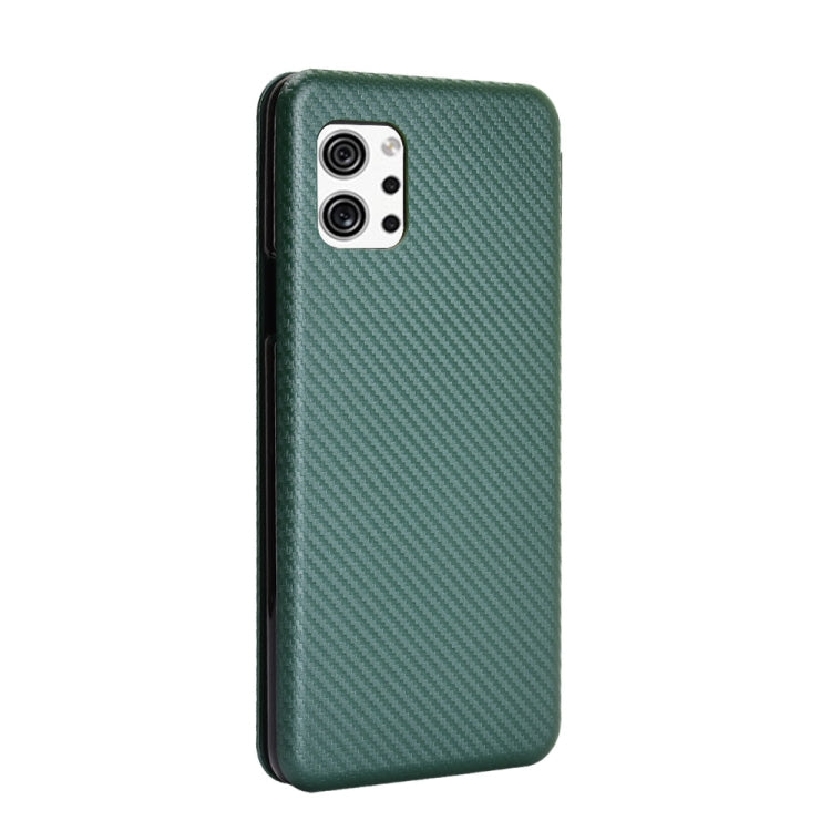 Funda para LG Q92 5G con Textura Fibra de Carbono, Tapa Magnética Horizontal TPU + PC y Cuero PU con Ranura (Verde)