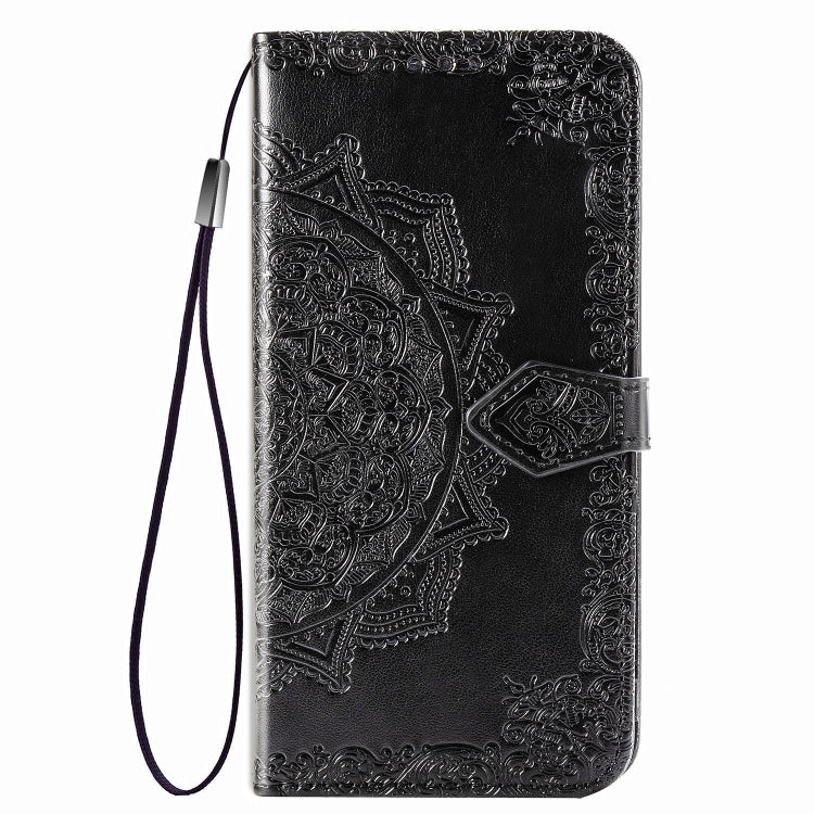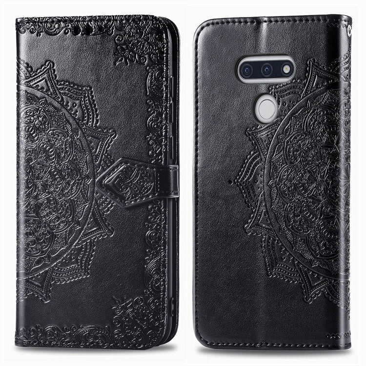 Funda de Cuero Mandala Flower para LG Style3 L-41A con Tapa Horizontal, Soporte, Ranura para Tarjeta y Cordón (Negro)