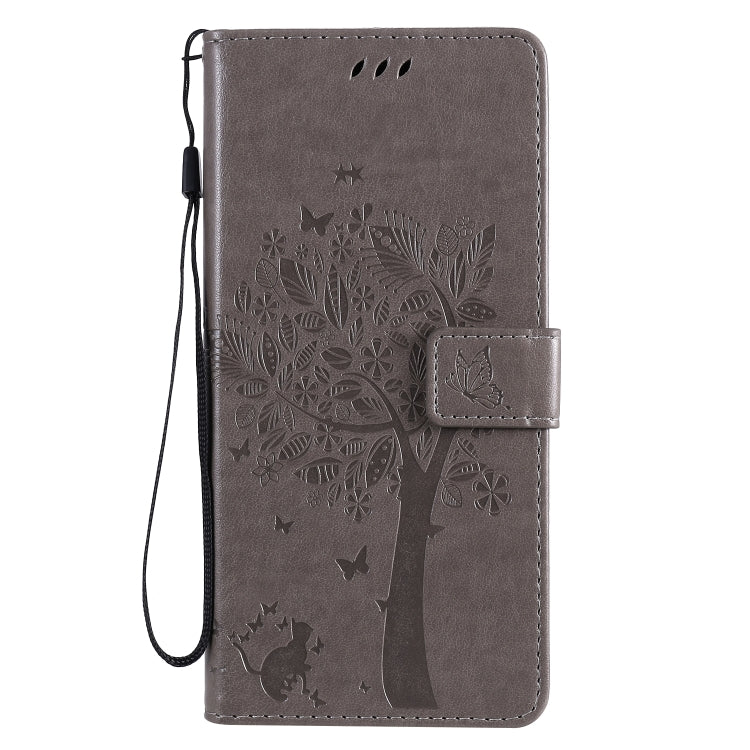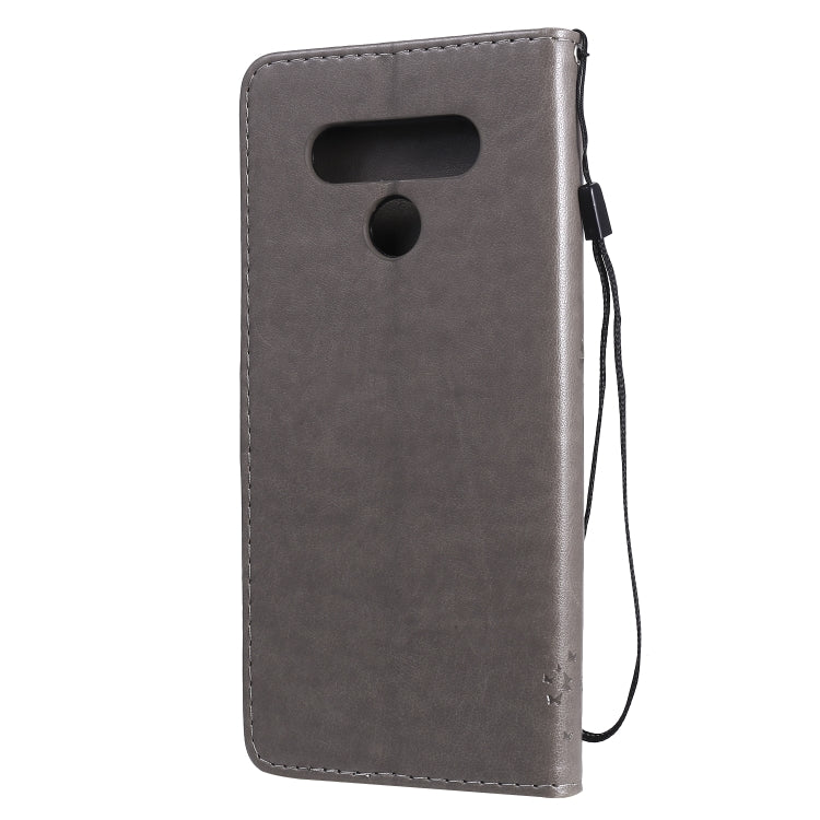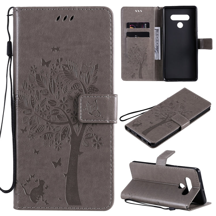 Funda de Cuero para LG Stylo 6 con Tapa Horizontal, Patrón Árbol y Gato, Soporte, Ranuras para Tarjetas, Billetera y Cordón (Gris)