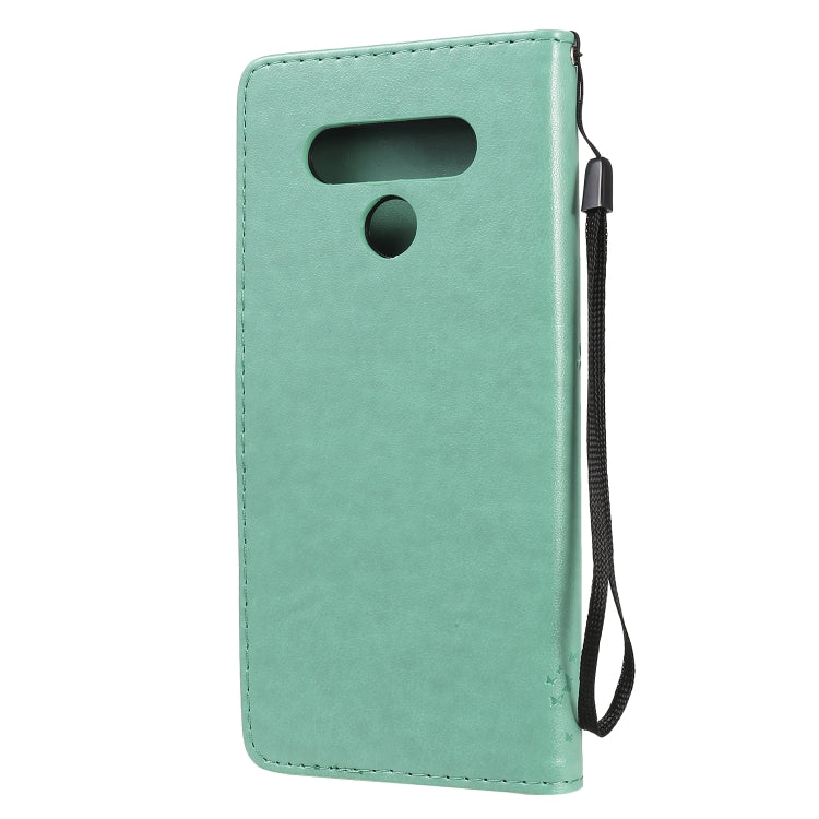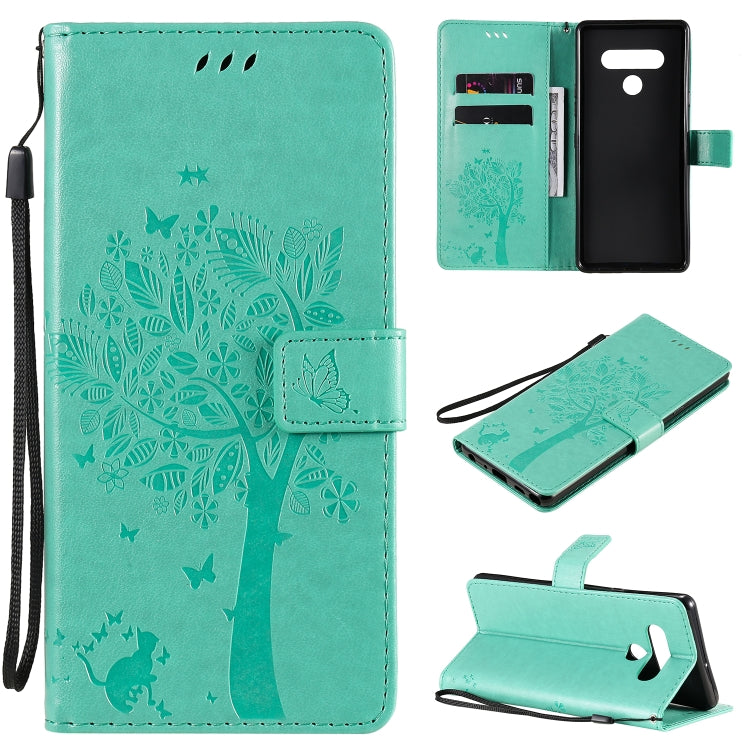 Funda de Cuero para LG Stylo 6 con Tapa Horizontal, Patrón Árbol y Gato, Soporte, Ranuras y Cordón (Verde)
