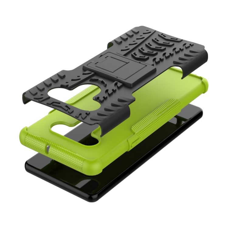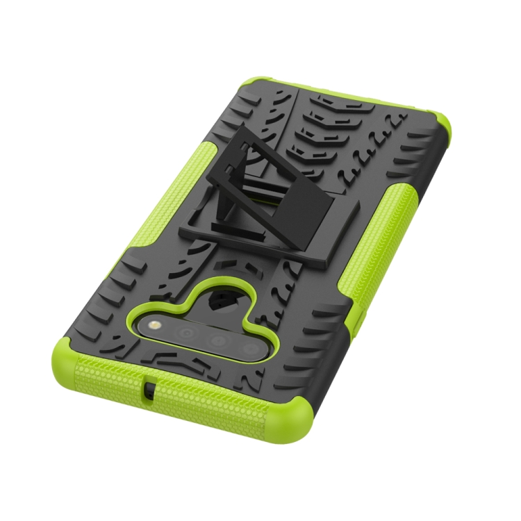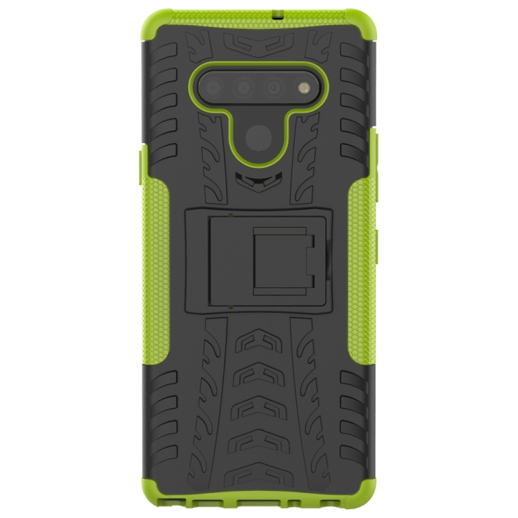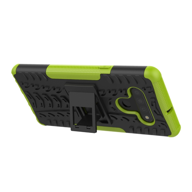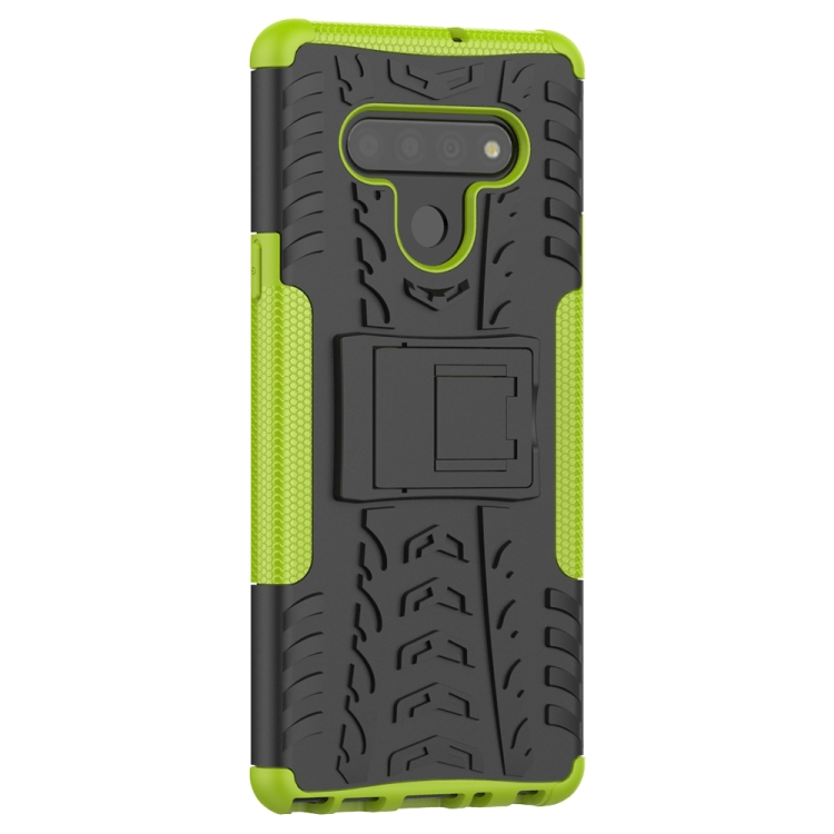 Funda Protectora TPU + PC para LG Stylo 6 con Textura de Neumáticos y Soporte (Verde)