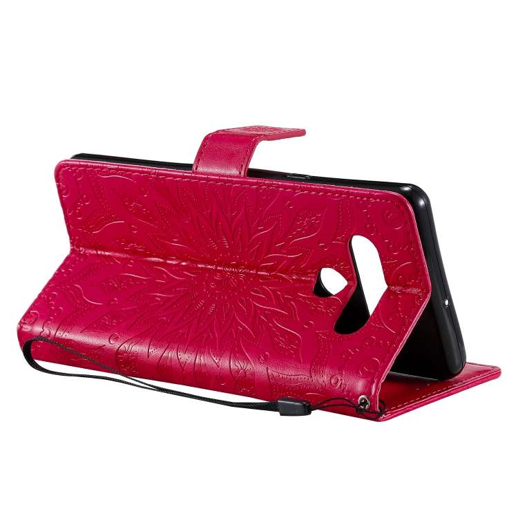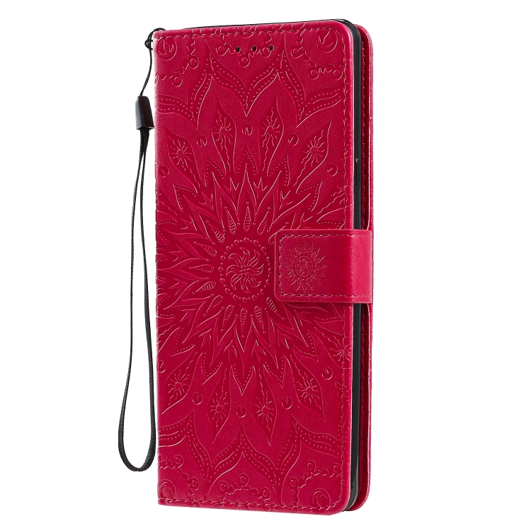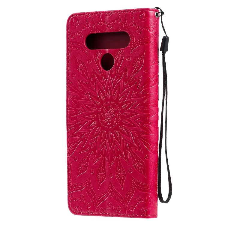Funda de Cuero PU para LG Stylo 6 con Patrón de Girasol, Tapa Horizontal, Soporte, Ranuras para Tarjetas y Cordón (Rojo)