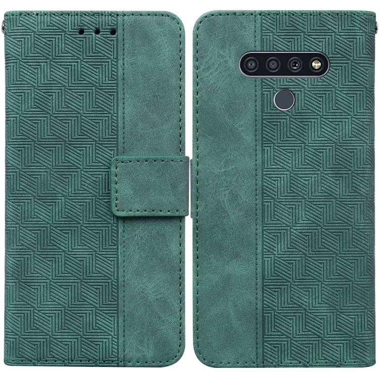 Caja de Cuero En Relieve Geométrico para LG Stylo 6 / K71 (Verde)