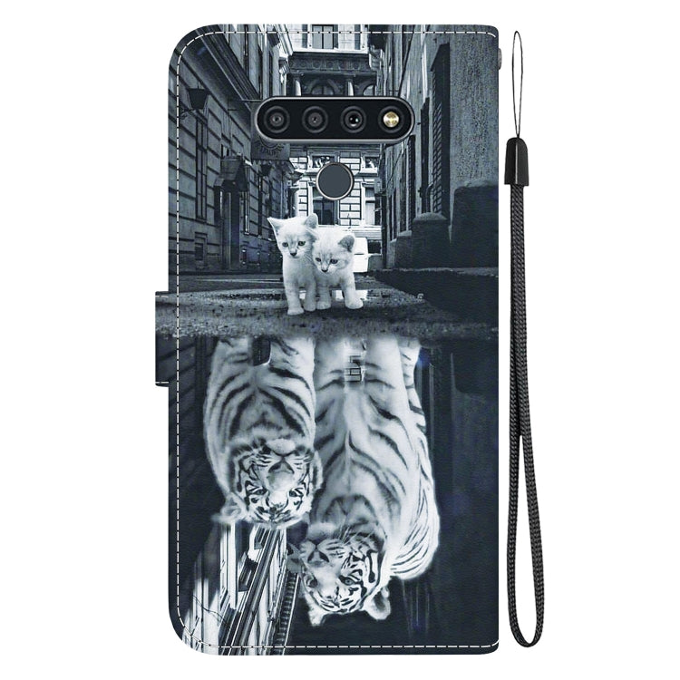 Funda de Cuero para LG Stylo 6 / K71 con Dibujo Coloreado y Textura de Cristal (Reflejo de Tigre Gato)