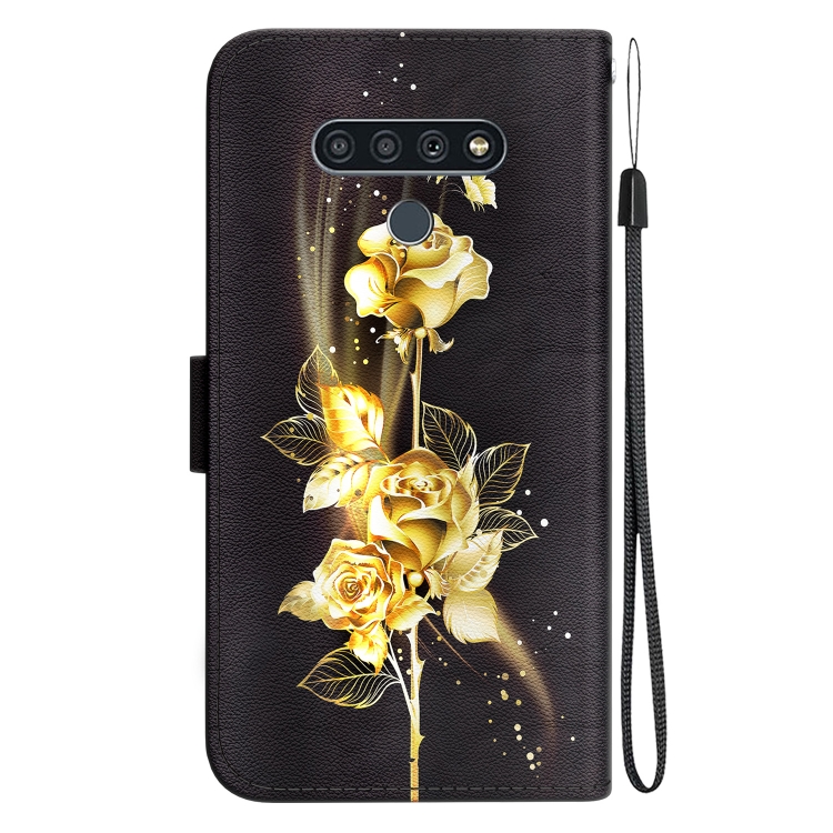 Funda para LG Stylo 6 / K71 de Cuero con Dibujo Coloreado y Textura de Cristal (Mariposa Dorada Rosa)