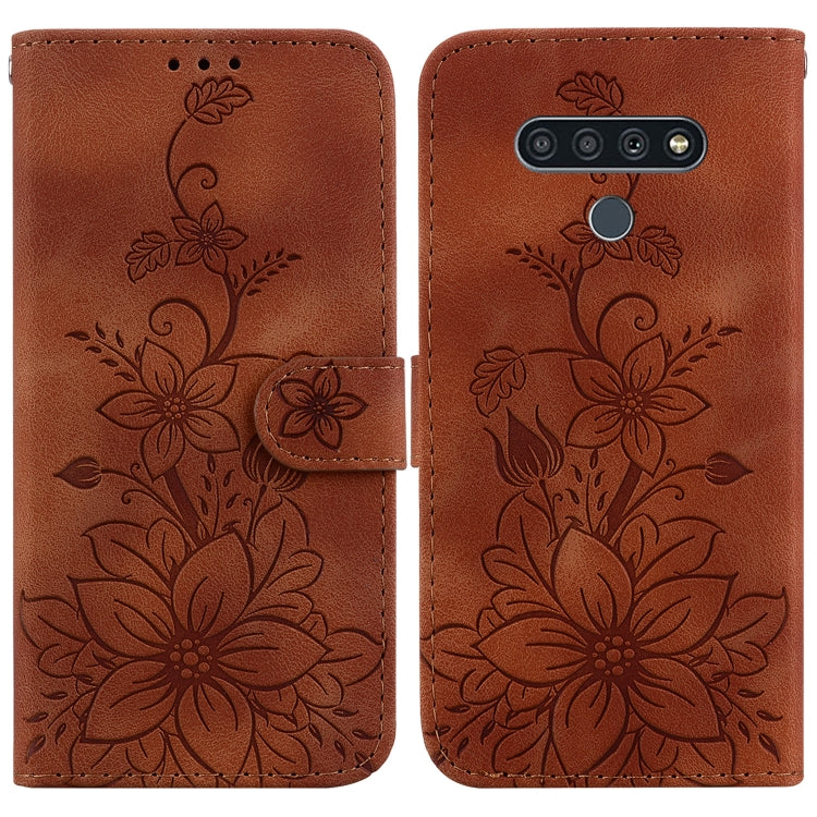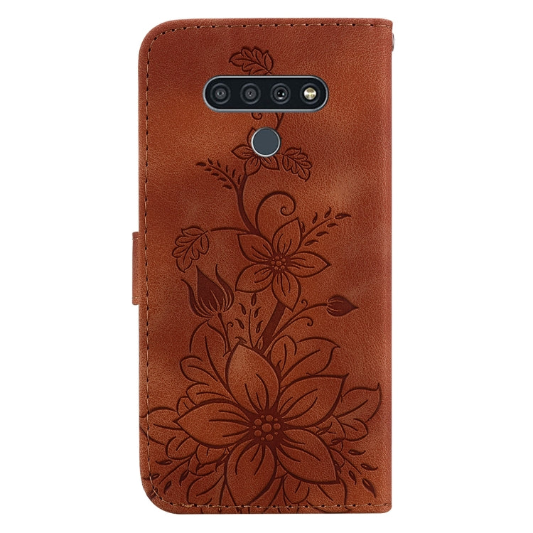 Funda para LG Stylo 6 / K71 de Cuero con Relieve Lily (Marrón)