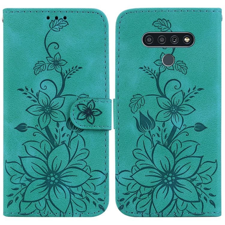 Funda para LG Stylo 6 / K71 de Cuero con Relieve Lily (Verde)