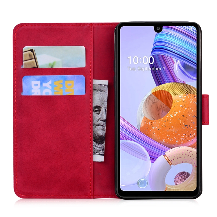 Funda para Teléfono LG Stylo 6 K71 de Cuero Siente la Piel Color Puro (Rojo)