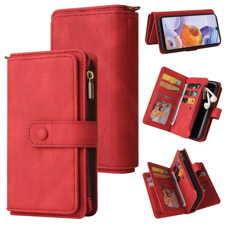 Funda de Cuero Flip Horizontal para LG Stylo 6 con Titular, 15 Tarjetas, Wallet, Cripper Pocket y Lanyard (Rojo)