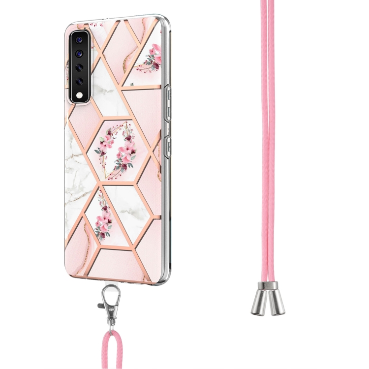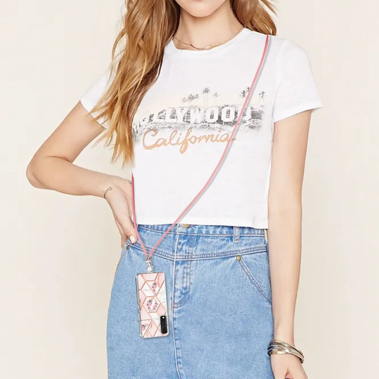 Funda TPU LG Stylo 7 4G Electrochaplating Patrón Flores Mármol a Prueba de Golpes con Cordón (Flor Rosa)