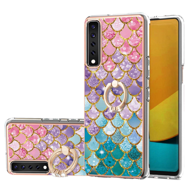 Funda TPU LG Stylo 7 4G con Patrón Galvanoplastia y Soporte de Anillo (Escamas Coloridas)