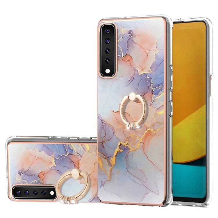 Funda TPU LG Stylo 7 4G Patrón Galvanoplastia a Prueba de Golpes con Soporte Anillo (Mármol Blanco Láctea)