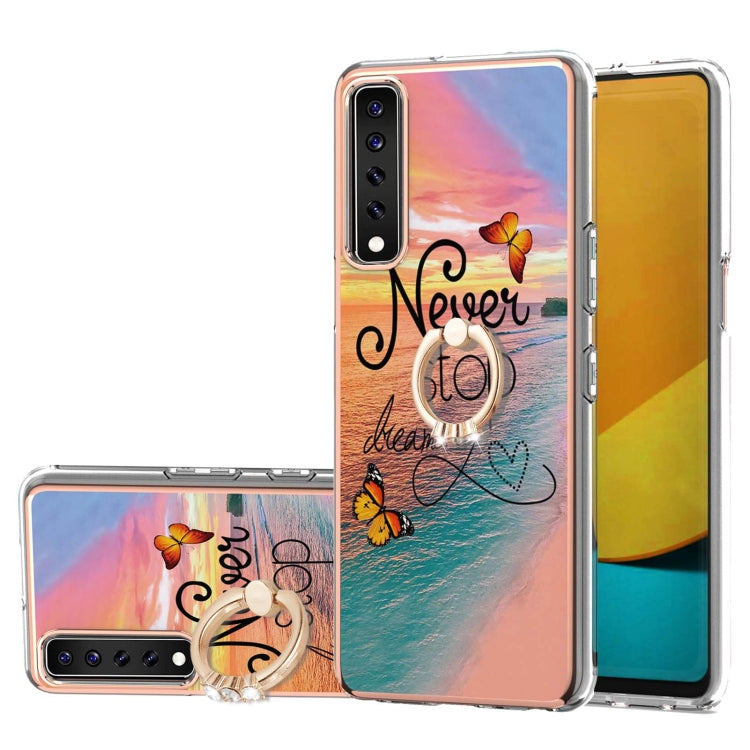 Funda TPU LG Stylo 7 4G con Patrón Galvanoplastia, Soporte Anillo y Diamantes (Sueño Persiguiendo Mariposa)