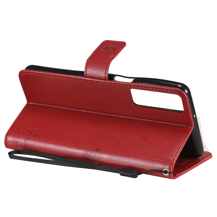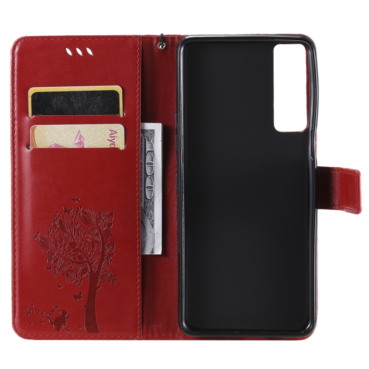 Funda Cuero Horizontal LG Stylo 7 5G / 4G Patrón Gato con Soporte y Billetera (Rojo)