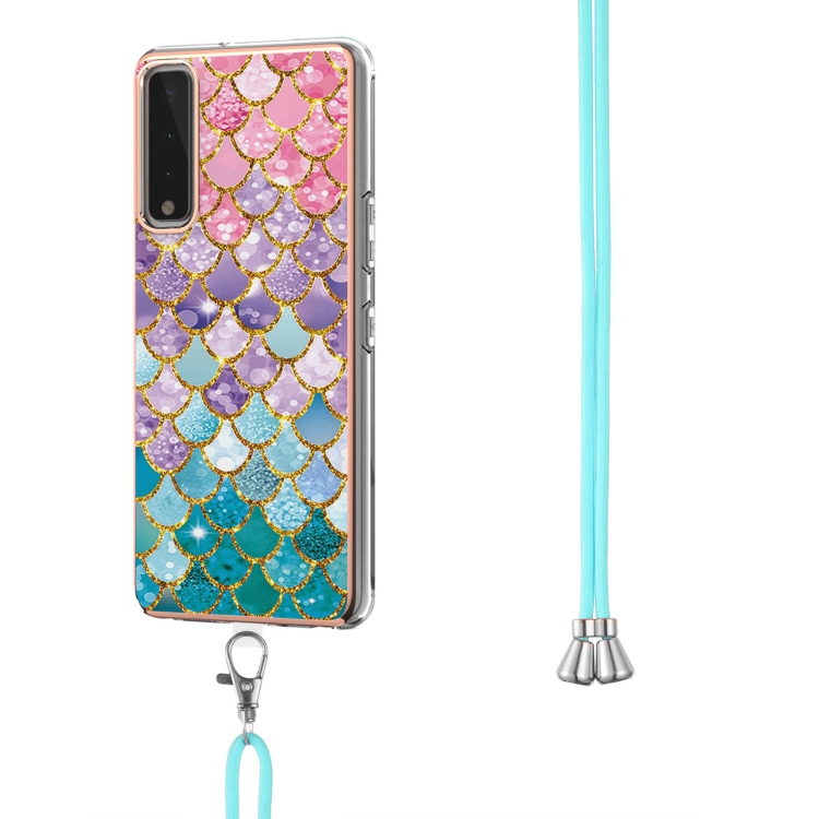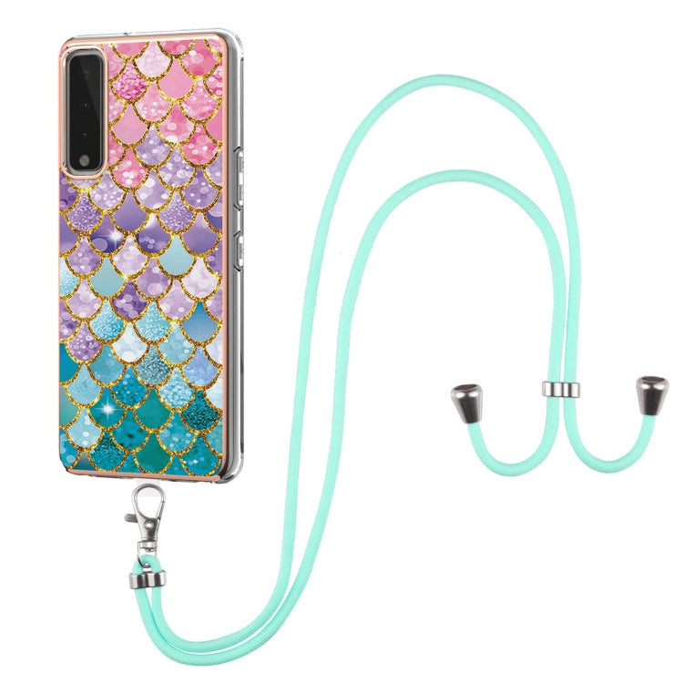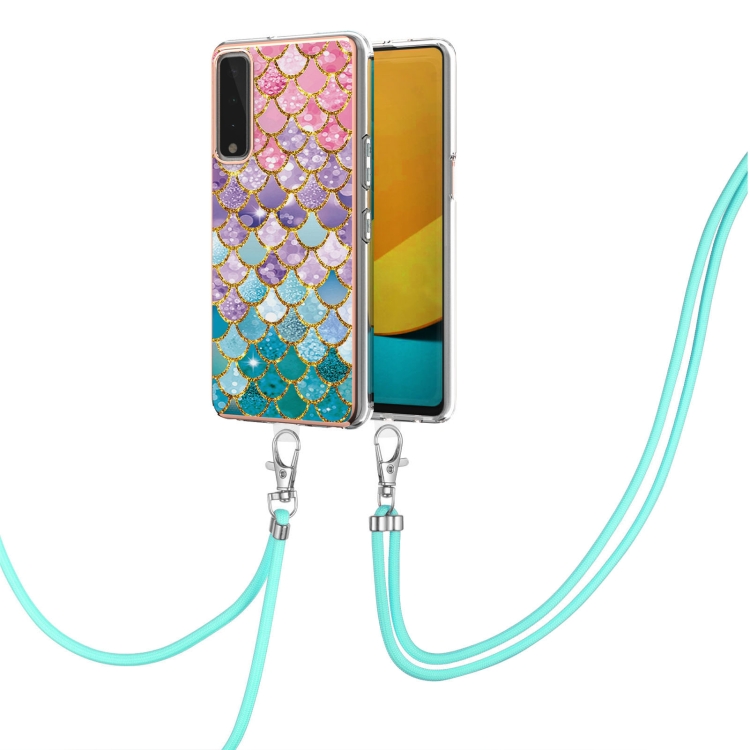 Funda TPU LG Stylo 7 5G con Patrón de Galvanoplastia, a Prueba de Golpes y Cordón de Cuello (Escamas Coloridas)