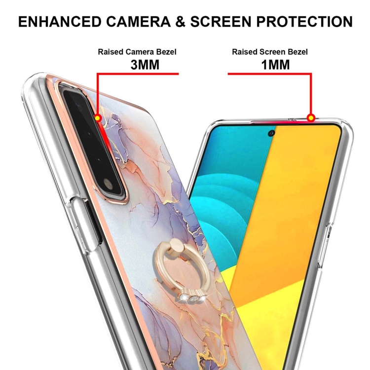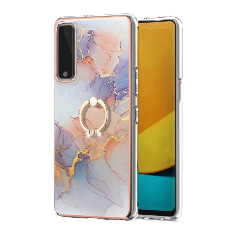Funda TPU LG Stylo 7 5G Patrón Galvanoplastia a Prueba de Golpes con Soporte Anillo (Mármol Blanco Láctea)