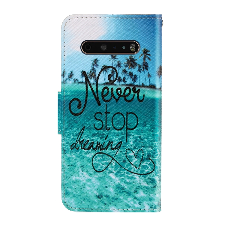 Funda de Cuero Abatible Horizontal para LG V60 con Dibujo, Soporte, Ranura para Tarjeta y Billetera (Blue Coconut Grove)