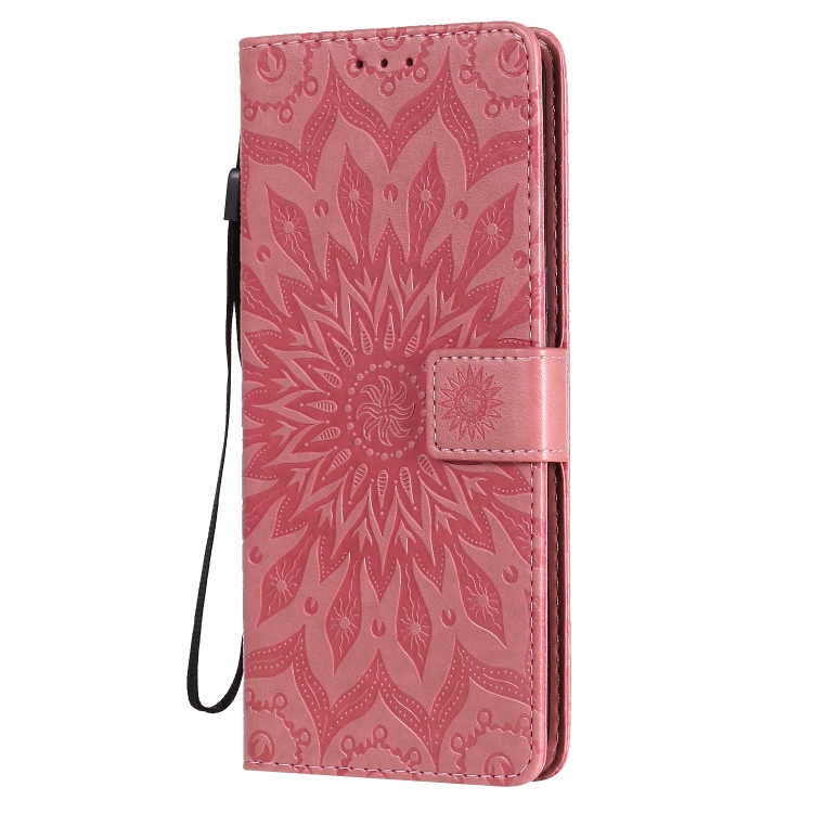 Funda para LG V60 Thinq 5G Cuero PU con Diseño Girasol, Soporte, Ranuras y Cordón (Rosa)
