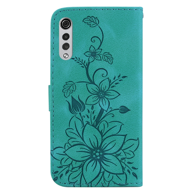 Funda de Cuero con Relieve Lily para LG Velvet 4G / 5G / G9 (Verde)