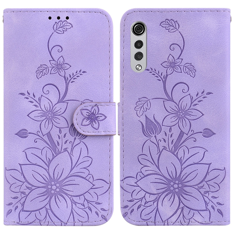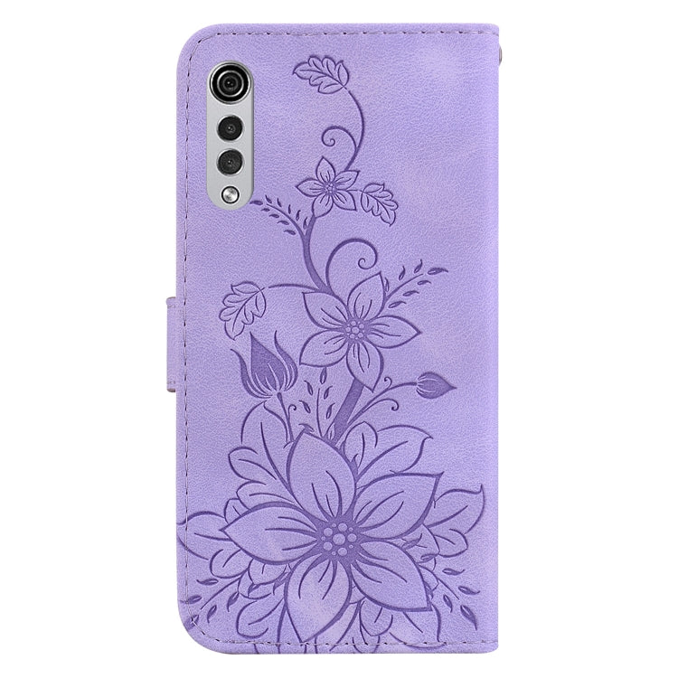 Funda para Teléfono LG Velvet 4G 5G G9 de Cuero con Relieve Lily (Púrpura)