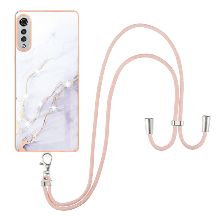 Funda TPU Galvanoplastia Patrón Mármol para LG Velvet 4G 5G G9 a Prueba de Golpes con Cordillero (Blanco)