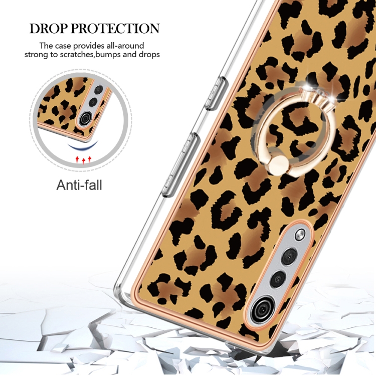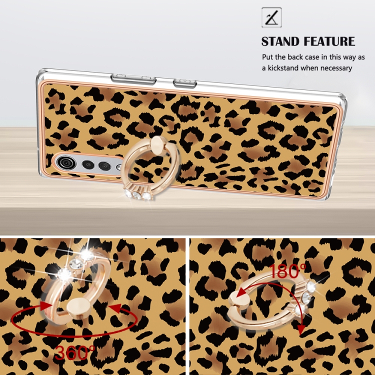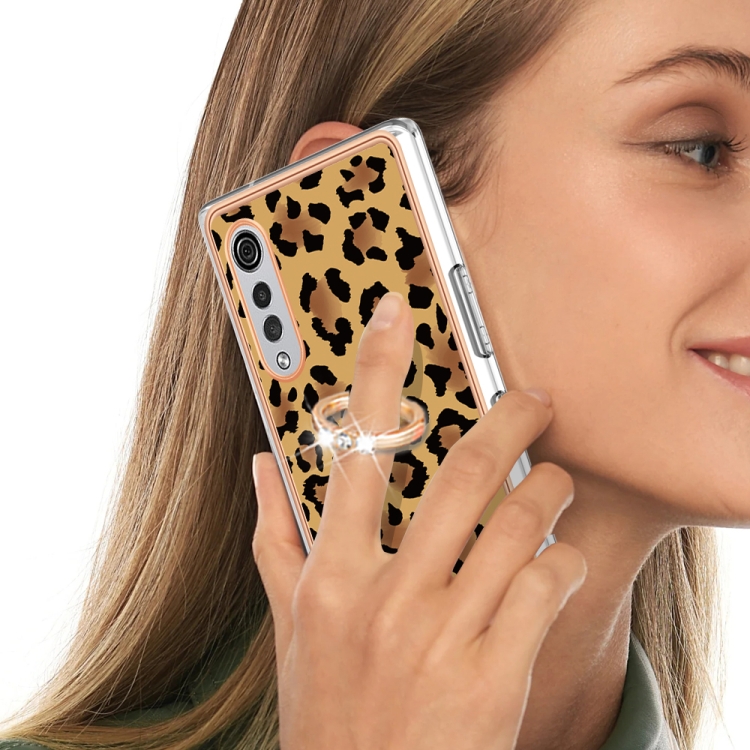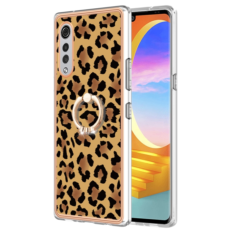 Funda para LG Velvet 5G / 4G / G9 Velvet Galvanoplastia Doble Cara con Soporte Anillo (Leopardo)