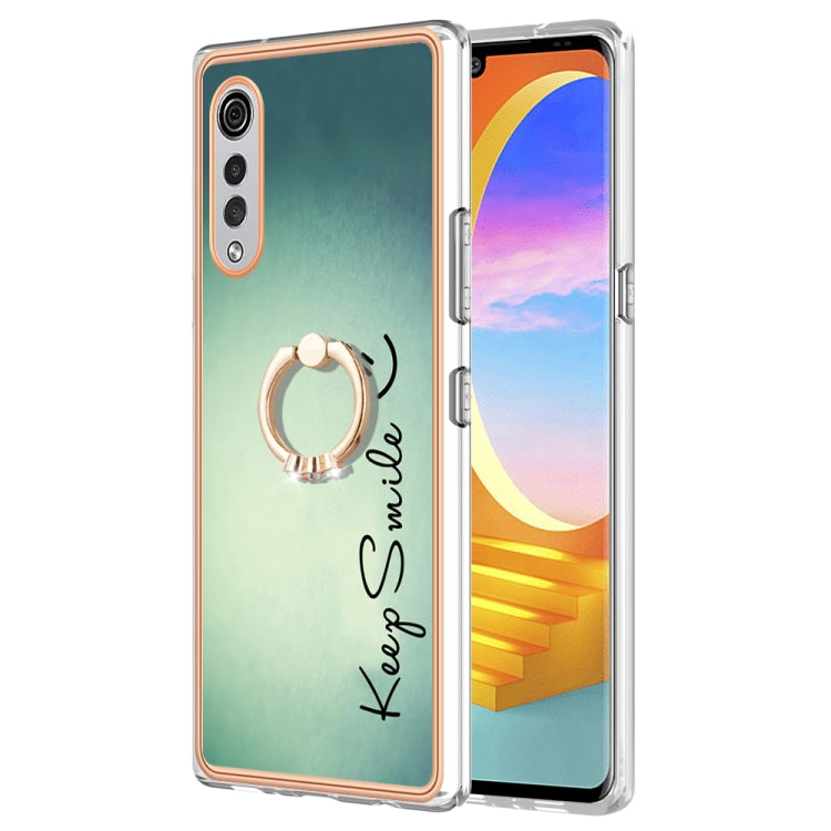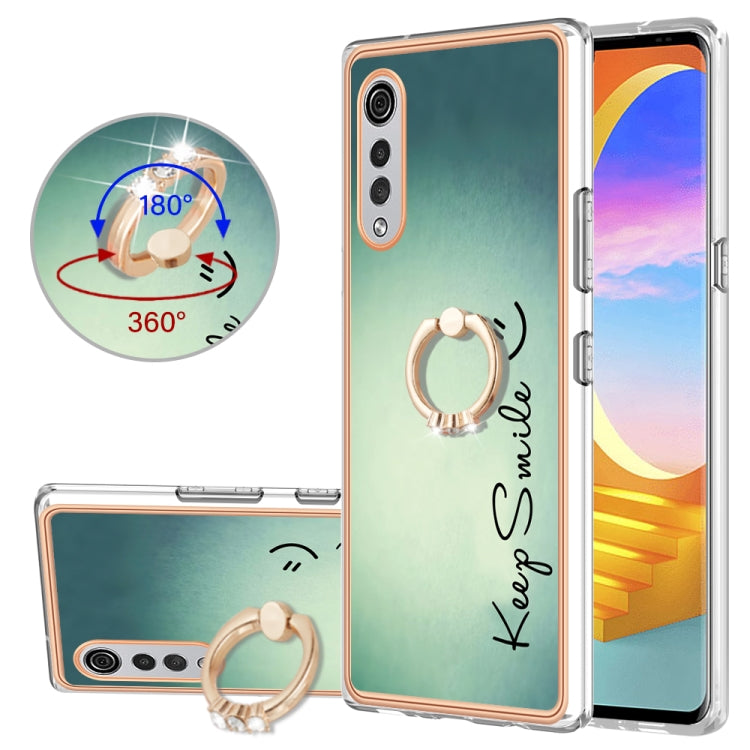 Funda para LG Velvet 5G 4G G9 Velvet Galvanoplastia Doble Cara con Soporte para Anillo (Sonrisa)