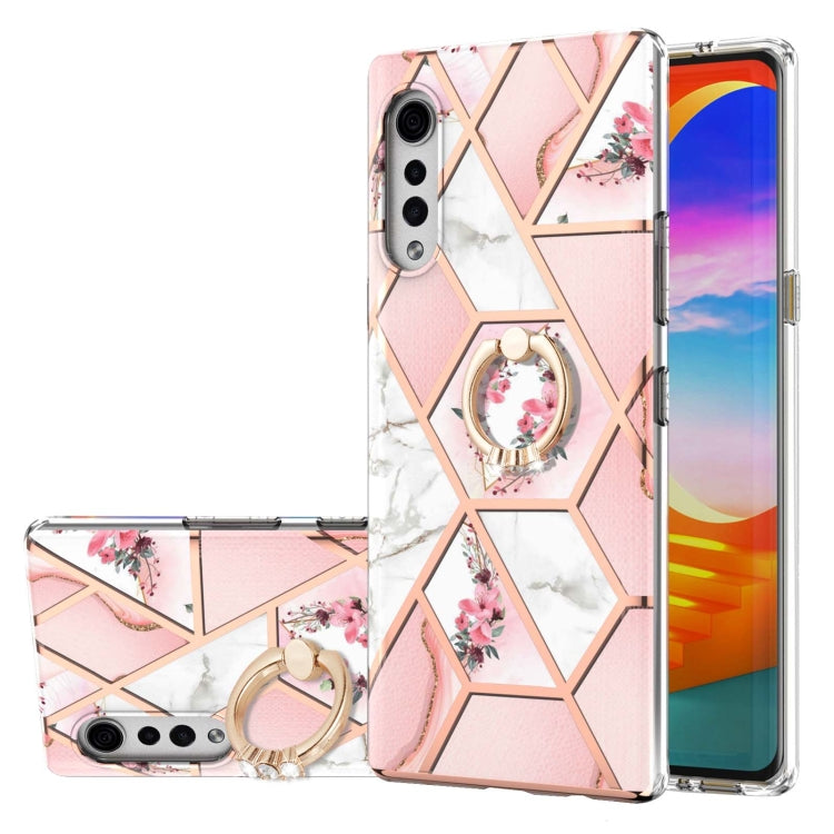 Funda TPU LG Velvet Electroplating Patrón Flores Mármol Soporte Anillo Diamantes (Flor Rosa)