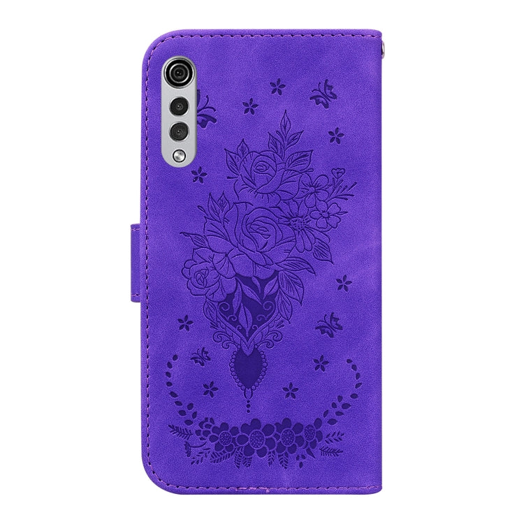 Funda de Cuero para LG Velvet G9 5G 4G Butterfly Rose Foothip en Relieve (Púrpura)