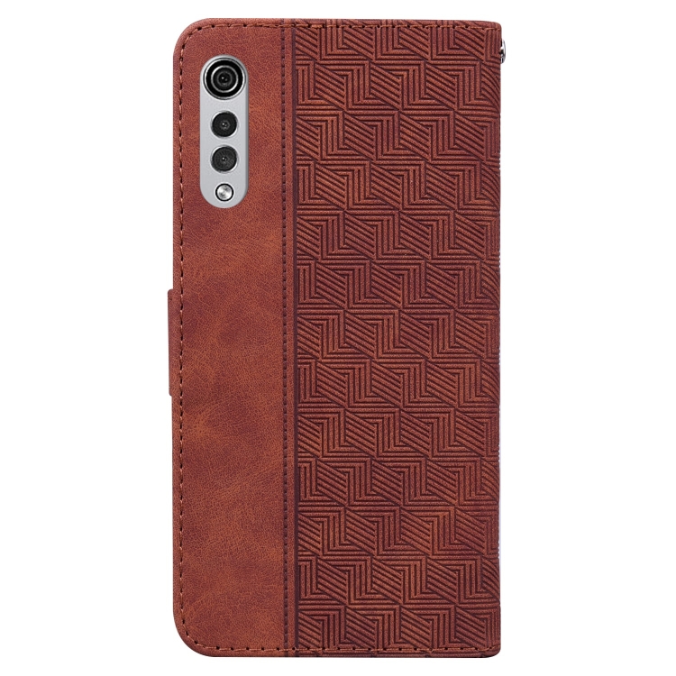 Caja de Cuero Geométrico en Relieve para LG Velvet / G9 5G / 4G (Marrón)