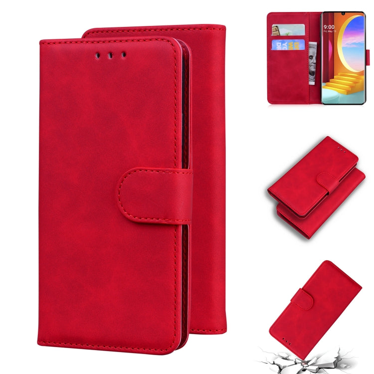 Funda para Teléfono LG Velvet G9 de Cuero Color Puro Siente la Piel (Rojo)