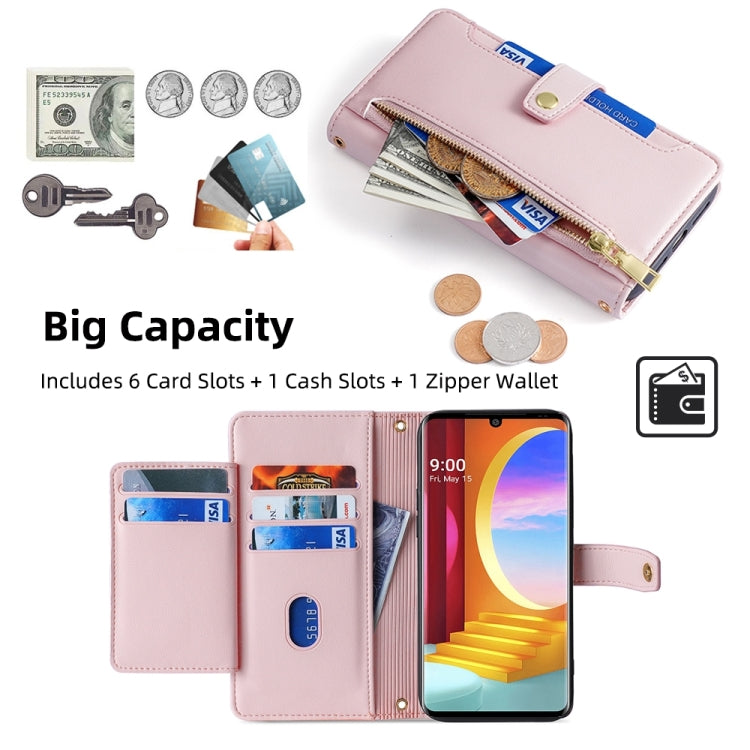 Funda de Cuero para Teléfono LG Velvet Sheep Texture Cross-Body Zipper Wallet (Rosa)