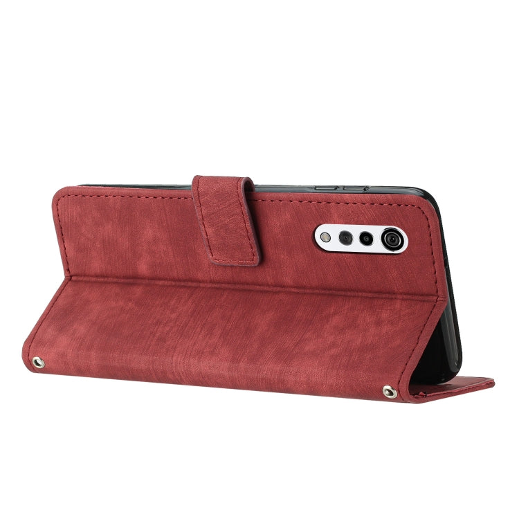 Funda de Cuero para LG Velvet y Velvet 5G con Cordón Skin Feel Stripe (Rojo)