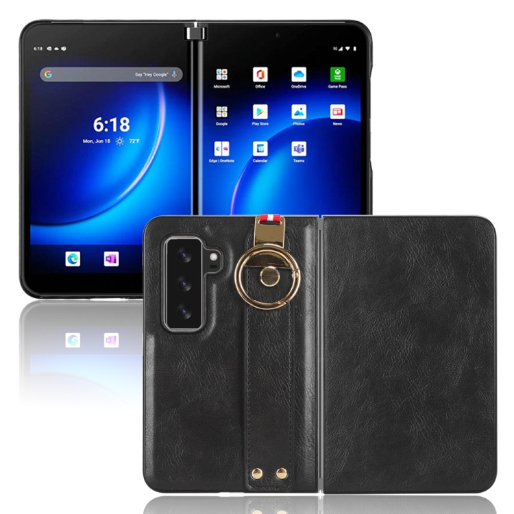 Funda Trasera de Cuero para Microsoft Surface Duo2 Muñequera para Teléfono (Negro)