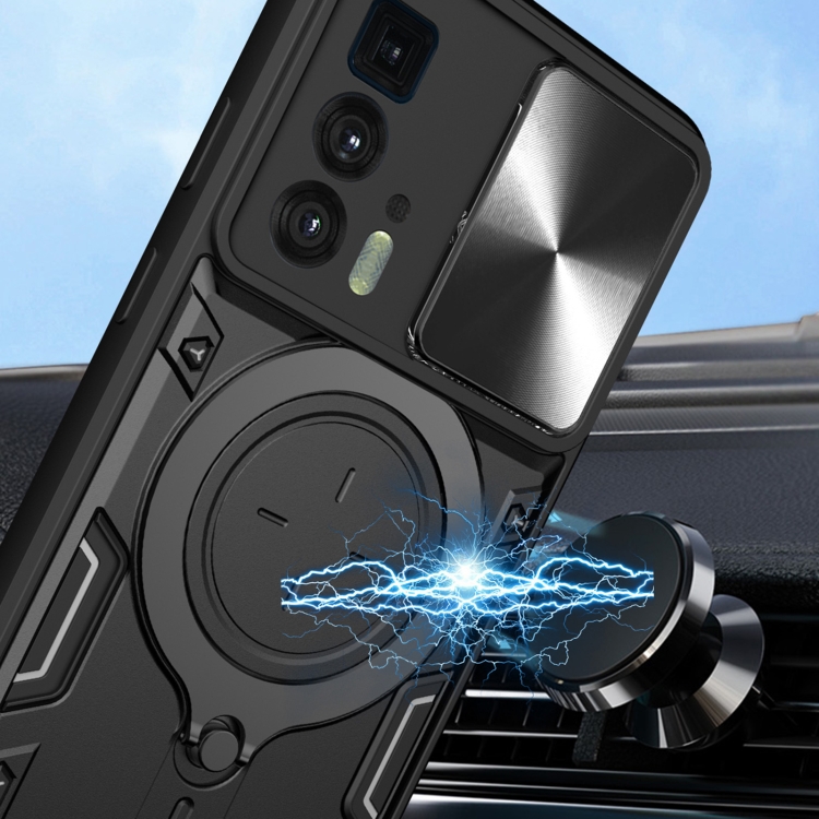 La Funda para Motorola Edge 20 Pro con textura deslizante Camshield y Soporte magnético en color Púrpura es un Accesorio diseñado específicamente para proteger y complementar este modelo de Teléfono Móvil. Fabricada con materiales TPU y PC, esta Funda ofrece una protección integral contra rayaduras, suciedad y desgaste habitual, asegurando la conservación óptima del dispositivo. Su diseño incluye una Cubierta deslizante que protege la Cámara, evitando daños en la Lente, y un Soporte magnético que facilita el uso práctico y funcional del Teléfono. Además, está diseñada con precisión para mantener la accesibilidad total a todos los Botones y Puertos del Motorola Edge 20 Pro, garantizando un uso cómodo y sin interferencias.