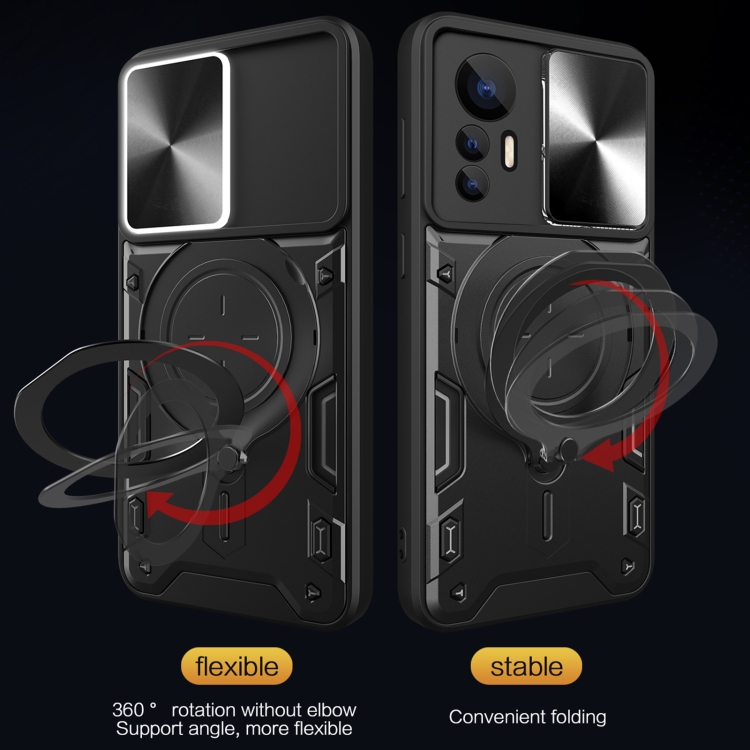 - Diseño con Cubierta deslizante para protección de Cámara y Soporte magnético integrado