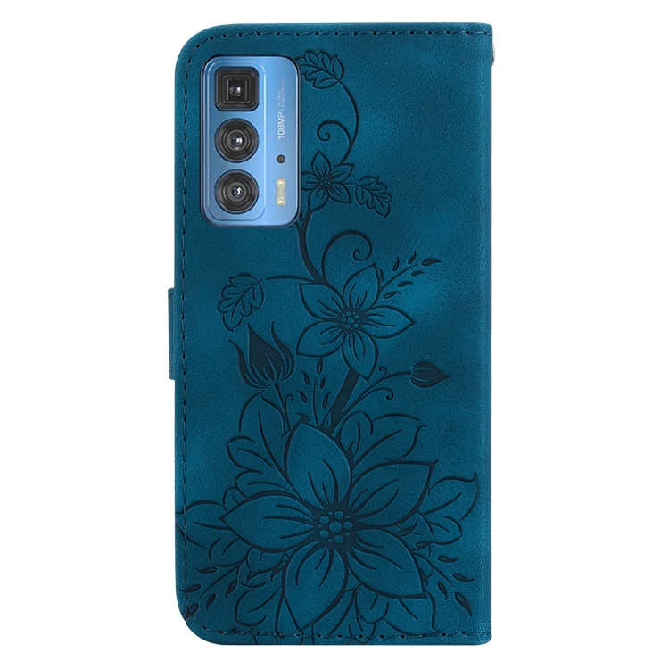Funda para Motorola Edge 20 Pro Lily de Cuero en Relieve (Azul Oscuro)