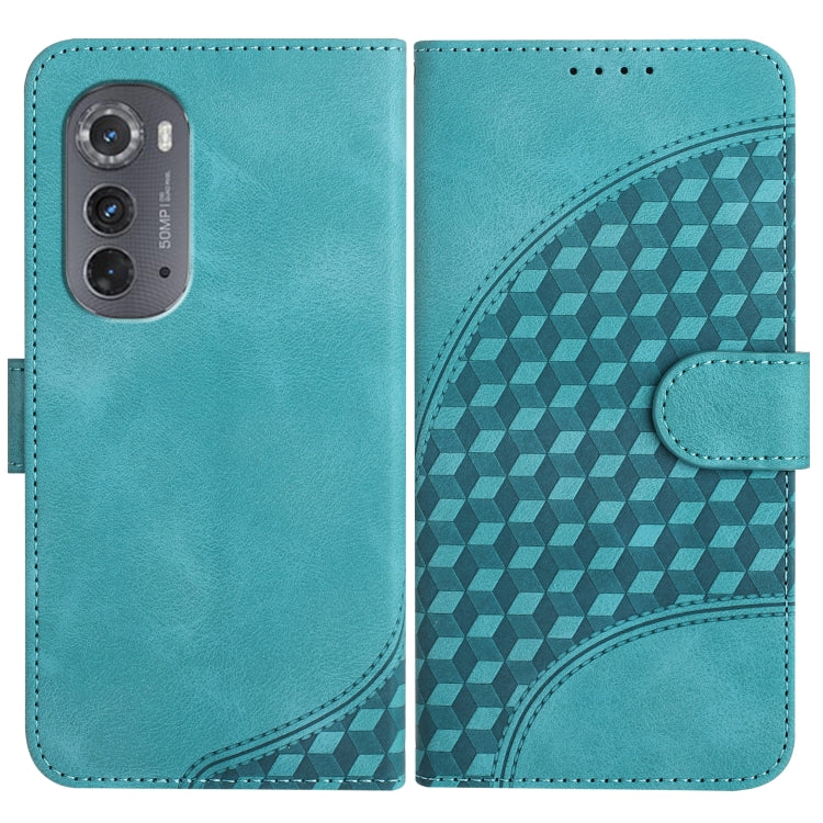 Funda de Cuero Motorola Edge 2022 Yx0060 con Relieve Cabeza de Elefante y Cordón (Azul Claro)