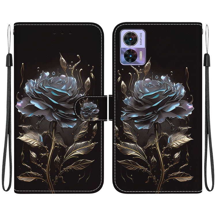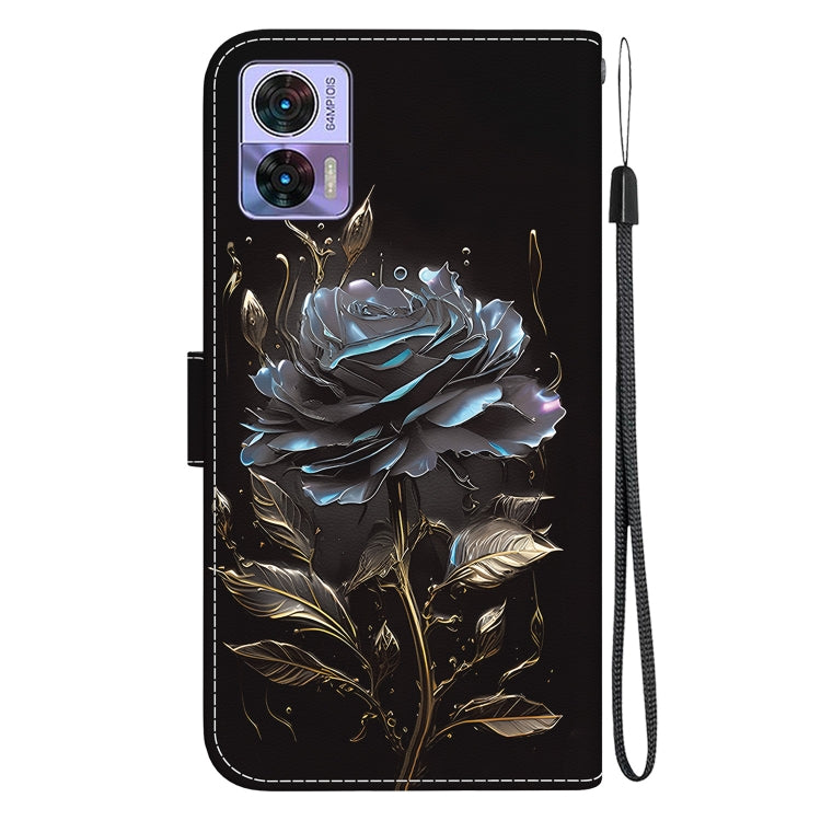 Funda para Motorola Edge 30 Neo / 30 Lite de Cuero con Dibujo Coloreado y Textura de Cristal (Rosa Negra)