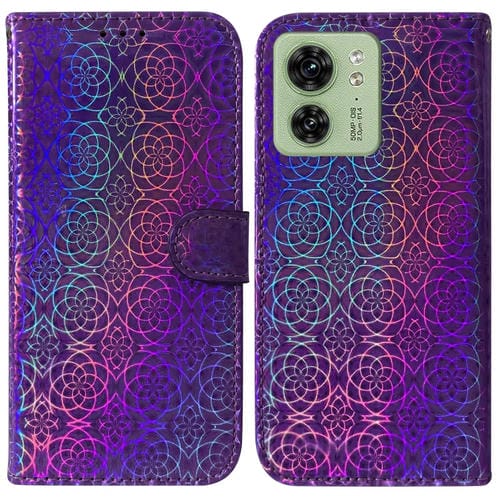 - 1x Caja de Teléfono de Cuero para Motorola Edge 40 con hebilla magnética colorida (Púrpura)