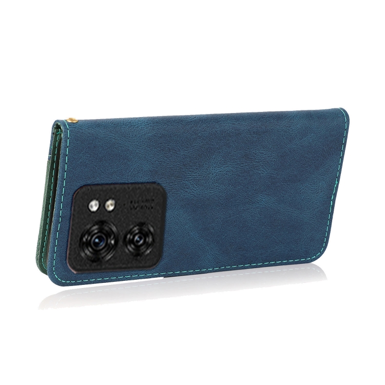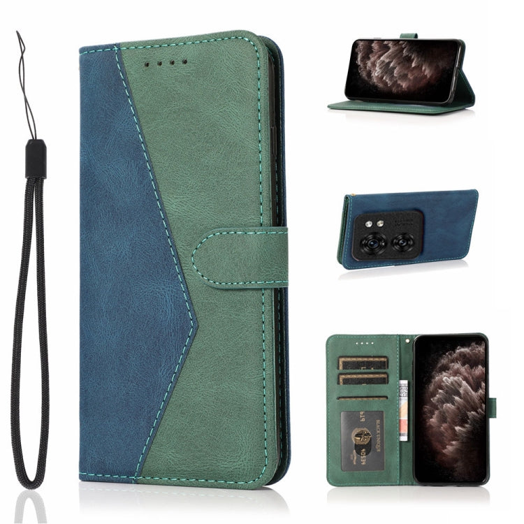Funda de Cuero para Motorola Edge 40 con Costuras de Dos Colores (Azul Verde)