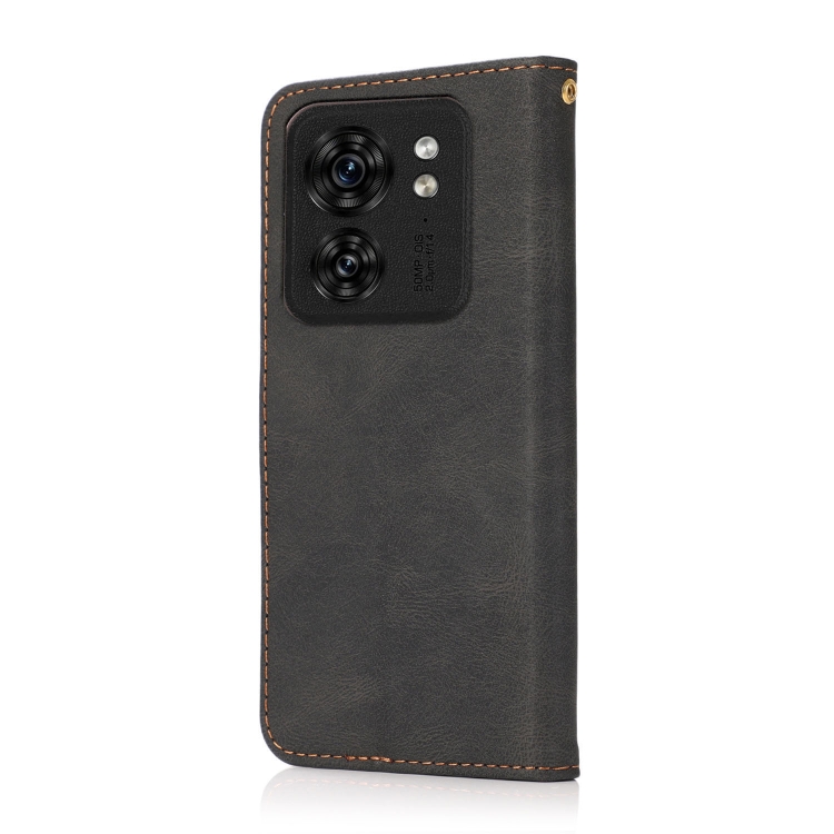 Funda de Cuero para Motorola Edge 40 con Costuras de Dos Colores (Negro Marrón)