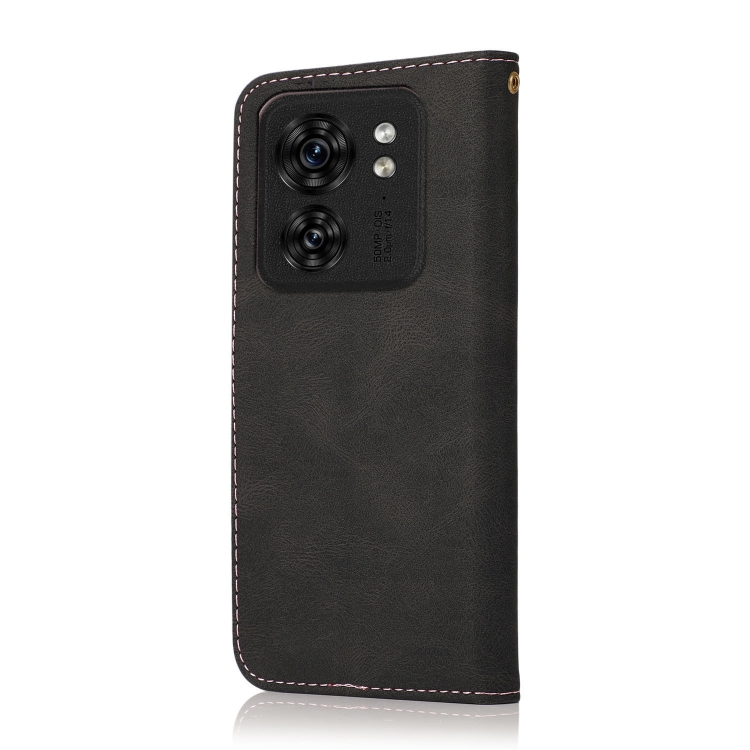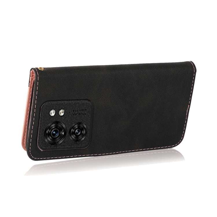 Funda de Cuero para Motorola Edge 40 con Costuras de Dos Colores (Oro Rosa Negro)