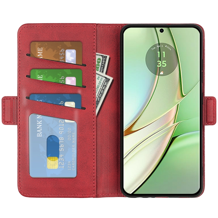 Funda de Cuero para Motorola Edge 40 con Tapa Horizontal y Hebilla Magnética Doble Cara (Rojo)