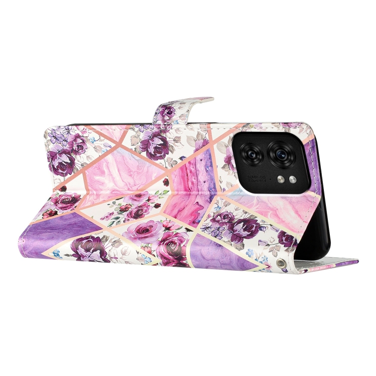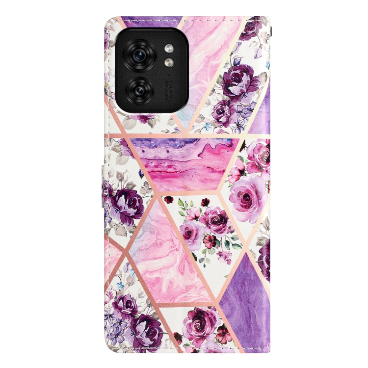 Funda de Cuero para Motorola Edge 40 con Dibujo Coloreado Mármol (Púrpura)