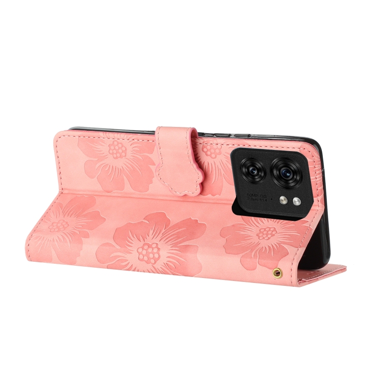 Funda de Cuero para Motorola Edge 40 con Estampado de Flores (Rosa)