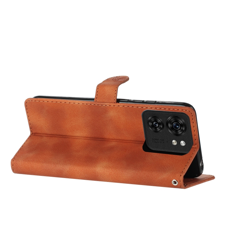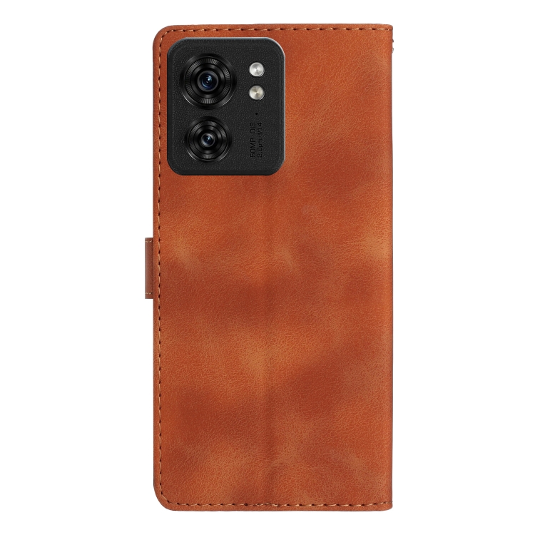 Funda de Cuero para Motorola Edge 40 con Estampado de Mariposa y Flores (Marrón)