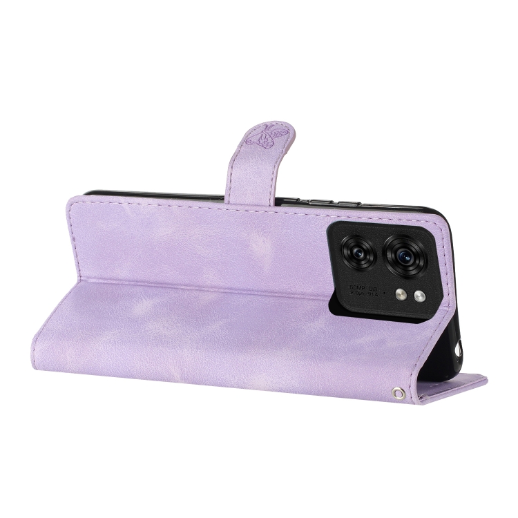 Funda de Cuero para Motorola Edge 40 con Estampado de Mariposa y Flores (Púrpura)