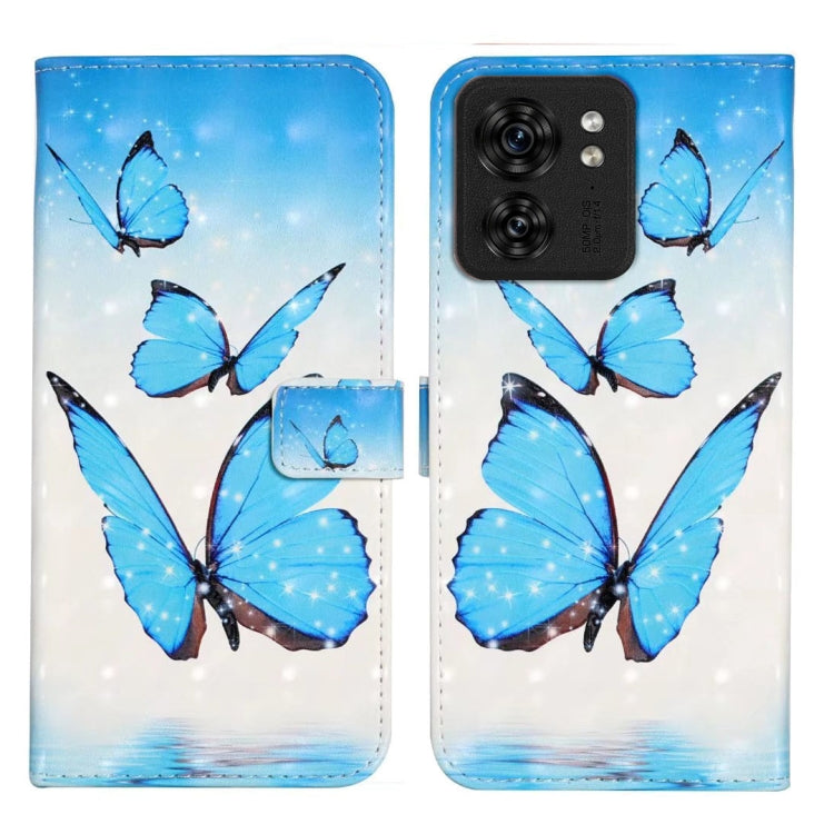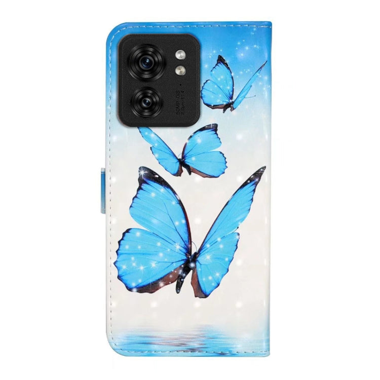 Funda de Cuero para Motorola Edge 40 con Dibujo 3D en Relieve al Óleo (3 Mariposas)